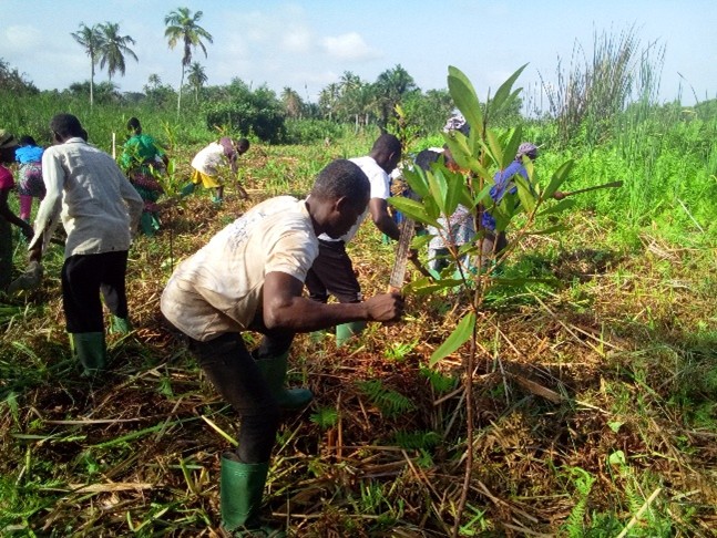 In the locality of Ahalivémé, located west of the canton of Anfoin in the commune of Lacs 4, the complete absence of mangroves exposed communities to multiple vulnerabilities: riverbank erosion, seasonal flooding, depletion of fish stocks, and loss of biodiversity. This situation limited local economic opportunities, particularly for women who depend on fishing and natural resources for their income, and exacerbated ecological fragility in the face of climate change.